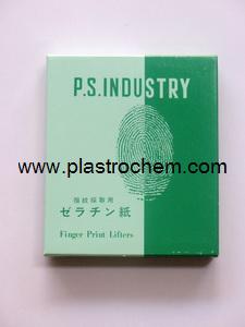 แผ่นเจลาตินสำหรับเก็บลายนิ้วมือ ขนาด 12 x 14 เซนติเมตร บรรจุ 25 แผ่น/กล่อง สามารถลอกเก็บลายเส้นลายนิ้วมือได้ชัดเจนและละเอียด แต่ละแผ่นมี backing sheet มีให้เลือก 2 สี คือ backing sheet สีขาว และ สีดำ