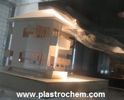 Demonstration of air flow around and thru a building model, using architectural wind tunnel.
