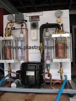 - Mass flow rates as well as temperature of refrigerant and water can be measured using rotameters and thermocouples with digital display.
